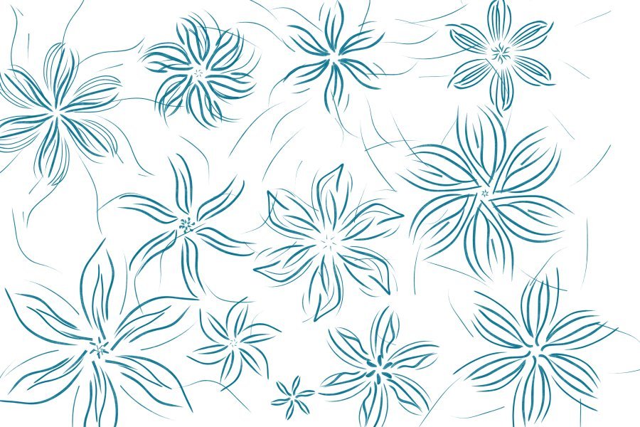 This artwork features an abstract composition created with refined fractal techniques, emphasizing stylized floral patterns. It is rendered predominantly in teal and aqua tones, enhancing its calming and tranquil effect. The intricate line work forms a mesmerizing rhythm of blooms, creating a seamless flow across the surface. Produced in 2025, this piece embodies a minimalist yet detailed aesthetic. It is ideal for decorative applications, contributing a refreshing and peaceful atmosphere.