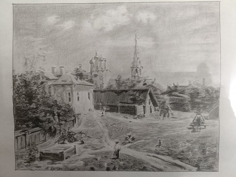 Graphite pencil work from Polenov's painting "Moscow Courtyard"
