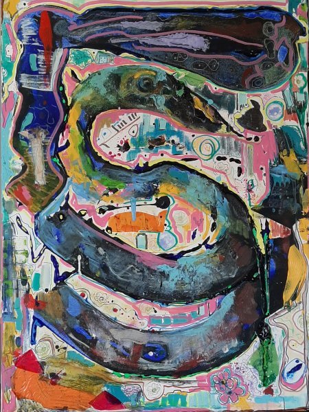 This work is created using acrylic paint on canvas, employing dense, textured layers that give depth to the colors. Created in 2025, the piece exemplifies the contemporary approach of the artist A.fe, who employs spontaneous gestures and flowing materials to reflect internal emotional processes. The artist's signature validates the authenticity of this unique work, which highlights the interaction between form and matter.
