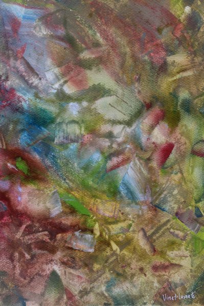This artwork explores the richness of the warm colours of Indian summer, through a vibrant and expressive abstract composition. The layers of gouache create a striking texture, which draws the eye and evokes deep emotions. The touches of brick red blend harmoniously with the shades of olive green, creating a dynamic contrast on this abstract background. The use of colour and texture demonstrates Vinet-Larente's talent for capturing the spirit of the season through a contemporary and inspiring approach.