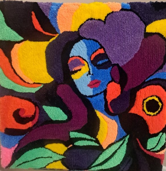 This painting is made with acrylic threads on an artboard. The author created a multi-layered texture, which gives the work a special depth and volume. The work stands out for its unique design, which can become a bright addition to the interior. The use of various colors creates an atmosphere of celebration and individuality.
