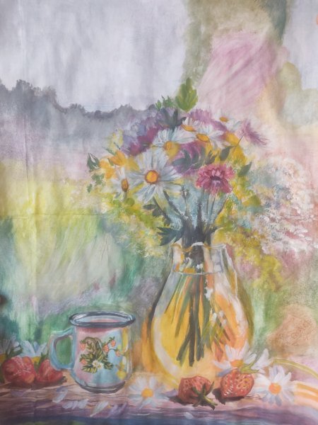 DESCRIPTION This is atmosphere painting where shown village still life with wild flowers. This bright painting make summer and care free plot, showing joy in the little things. Materials: album paper, acrulic paint, gouache paints, Glue PVA. Size: 15,7×12 inch (40×30,5 cm) STORAGE CONDITIONS Avoid exsposure to direct sunlight! Ingress of liguids and water! Don't store in hight humidity. The painting is not varnished.