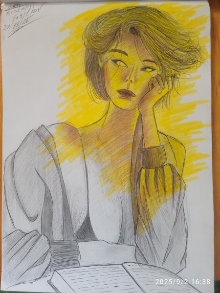 Dieses Werk zeigt ein nachdenkliches Mädchen im Stil des Impressionismus, das durch das Spiel von Licht und Farbe die innere Welt und Emotionen vermittelt. Leichte und dynamische Striche erzeugen ein Gefühl von Bewegung und Lebensenergie, und die Kombination aus Grafiken und Markern verleiht dem Werk einen modernen Klang. Das Bild eröffnet dem Betrachter die Möglichkeit, in die Tiefen ihrer Gedanken zu blicken, wo die Sonnenstrahlen Hoffnung und einen Moment innerer Harmonie symbolisieren.