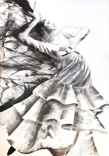 Der energiegeladene Flamencotanz inspirierte den Künstler zu dieser Grafik. Er trägt die ganze Seele der temperamentvollen Spanier in sich. Der Gitarrist spielt meisterhaft sein Instrument, die Menschen um ihn herum klatschen in die Hände und erzeugen einen klaren metrischen Rhythmus, das Mädchen führt ausdrucksstarke choreografische Bewegungen aus und klopft auf Kastagnetten. Alles verschmilzt zu einer einheitlichen kollektiven Aktion, hektisch wie Spanien selbst. Flamenco ist so bezaubernd, dass er niemanden gleichgültig lassen kann. Einige Forscher der Geschichte dieses Tanzes behaupten, sein Name stamme vom Wort „Flamme“, was die Intensität der Flamenco-Leidenschaft sehr deutlich widerspiegelt. Entgegen weit verbreiteten Missverständnissen über die semantische Bedeutung des Flamenco geht es bei diesem Tanz keineswegs um Liebe und Spaß. Der feurige, ausdrucksstarke Flamenco spiegelt das Leid und den Schmerz der Menschen wider, die die Reconquista ertragen mussten.