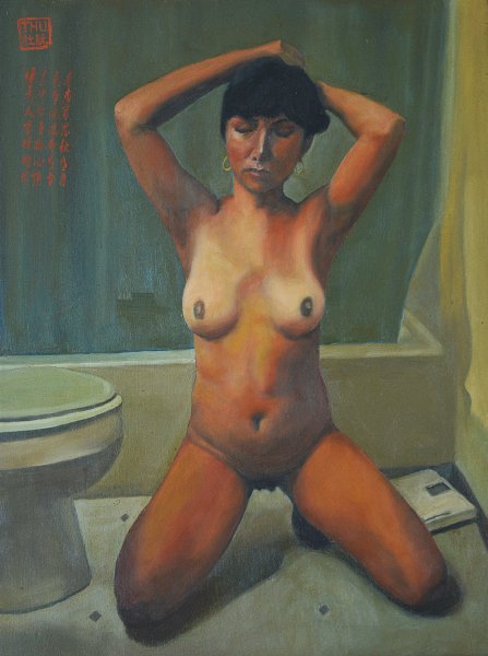 En esta cautivadora pintura, Thu Nguyen retrata con delicadeza la esencia del erotismo contemporáneo con precisión y maestría. La representación de una mujer desnuda, definida por su pose seductora y atractiva en un baño, evoca las sutilezas de la sensualidad humana moderna. La elegante pincelada, combinada con el sutil juego de luces y sombras, invita al espectador a una escena serena e íntima, que muestra vulnerabilidad y fuerza a la vez.