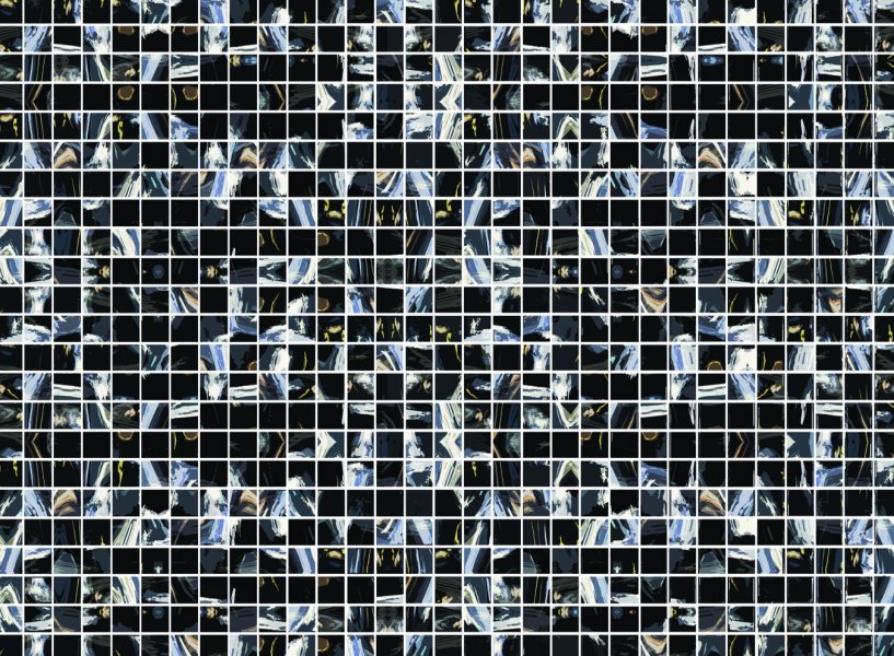 Rendu en noirs et gris – ombres superposées, dégradés changeants et formes floues. L'obscurité respire la texture : brume pixélisée, argent métallique et légers effets numériques flottent sur la scène. L'horizon se dissout dans un gris fumé, tandis qu'au-dessus, le ciel scintille d'une faible électricité statique. La géométrie scintille – fragments de structure, ou de mémoire – impressions fantomatiques qui brouillent la frontière entre forme et sentiment. Suspendu dans une immobilité monochrome, le spectateur est plongé dans un univers où le sens se dissout et où le silence vibre d'un souffle numérique.