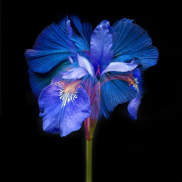 Questa stampa fotografica immortala un pesce betta maschio che nuota con grazia attorno a un'iride blu intenso. Stampata su carta fine art d'archivio da 300 g/m², l'opera conserva la vivacità dei colori e i dettagli raffinati. Creata nel 2017, è un esempio di tecnica fotografica d'eccellenza che enfatizza le forme naturali e i vividi contrasti cromatici, riflettendo l'essenza della delicata bellezza della natura.