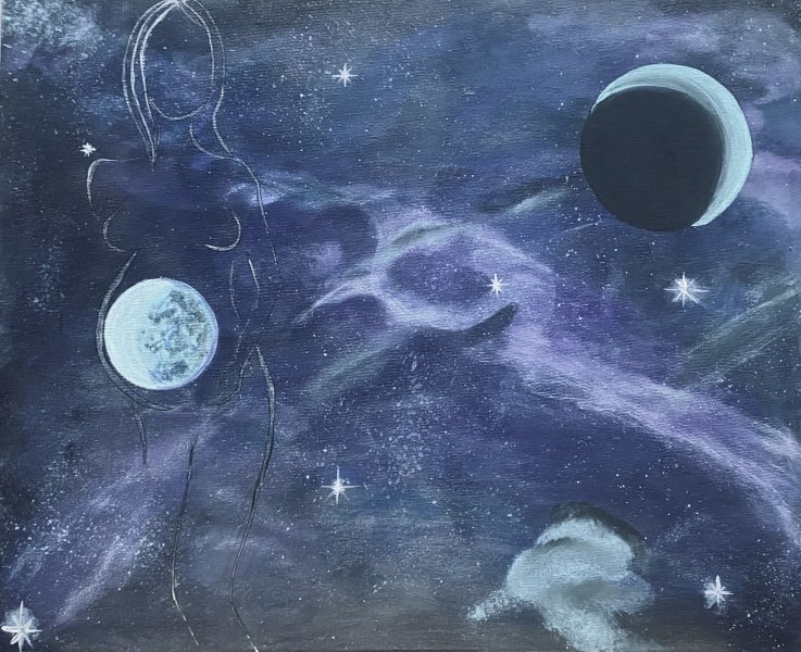 Obraz ten dotyka sedna problemu początków życia, łącząc w sobie obrazy kosmosu, planet i energii narodzin. Artysta przekazuje nie tylko fizyczny proces poczęcia, ale także duchową więź między matką i przyszłym dzieckiem. Paleta barw i styl Art Deco tworzą harmonijne poczucie jedności między światem i ludzkością, przywołując emocje nadziei, miłości i świętości każdego nowego początku. Oryginalny obraz. Od dawna chciałem przenieść coś podobnego na płótno, ale coś stanęło mi na przeszkodzie. Dopiero podczas narodzin i kształtowania się mojego pierworodnego dziecka, ręka sama przeniosła ten pomysł na płótno. Więc to zdjęcie jest pełne miłości i energii nowego życia ❤️🙏🏻