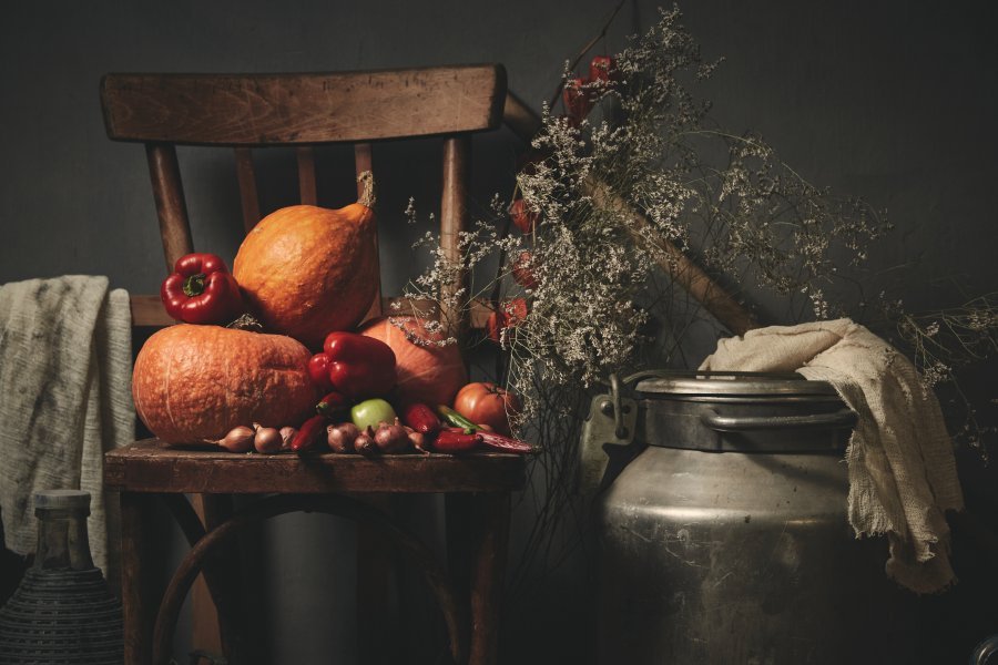 Praca wykonana jest techniką malarską, która oddaje głębię i bogactwo jesiennych barw. Fotograf zastosował techniki inspirowane holenderskimi martwymi naturami z XVII i XVIII wieku, podkreślając bogactwo i fakturę jadalnych owoców. Dzieło, datowane na 2023 rok, ukazuje organiczny, naturalny charakter zbiorów poprzez żywą paletę barw pomarańczowych i ciepłych.
