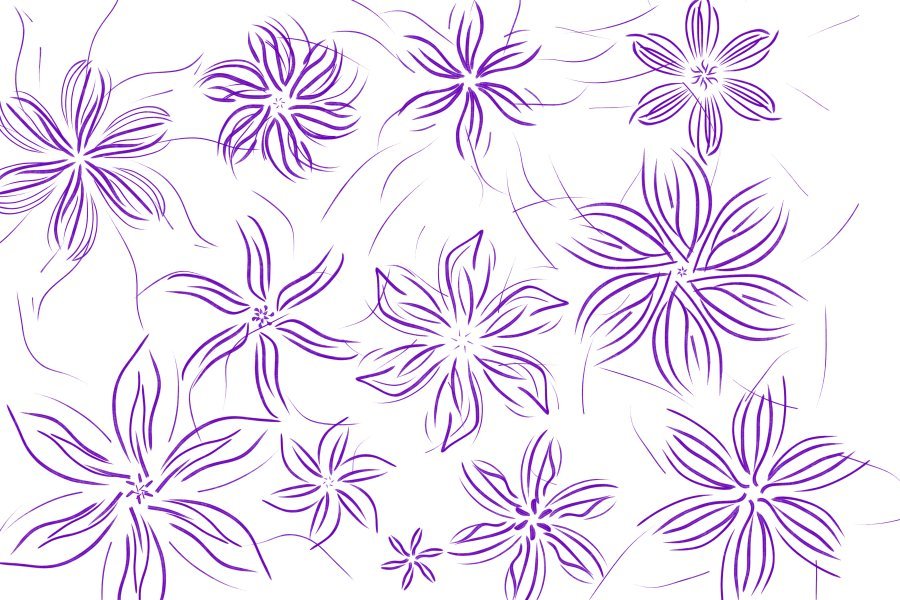 This artwork is created using fractal art techniques, featuring flowing single-line strokes in rich amethyst purple. The minimalist composition with a pristine white background emphasizes organic movement inspired by wildflowers swaying in the breeze. Completed in 2025, the piece showcases a seamless decorative pattern ideal for modern interior designs focused on simplicity and calm aesthetics.