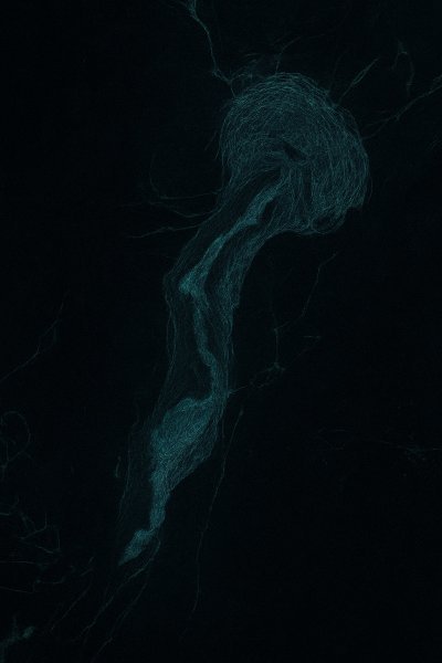 Esta obra digital abstrata 1/1 explora o movimento fluido e a energia orgânica, lembrando a deriva de águas-vivas e o fluxo neural. Criada com camadas de luz sobre a escuridão, ela evoca uma sensação de profundidade, emergência e forças invisíveis em ação. Um equilíbrio entre caos e calma, esta obra de arte fala de caminhos ocultos e marés subconscientes.
