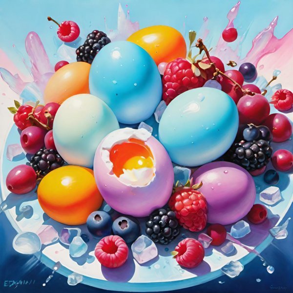 Эта работа передает живой и красочный дух радостного праздника. Гладкие сферы и яркие воздушные шары вызывают чувство веселья, игривости и праздника. Яркая цветовая палитра усиливает радостное праздничное настроение, приглашая зрителей погрузиться в момент счастья и общей радости.