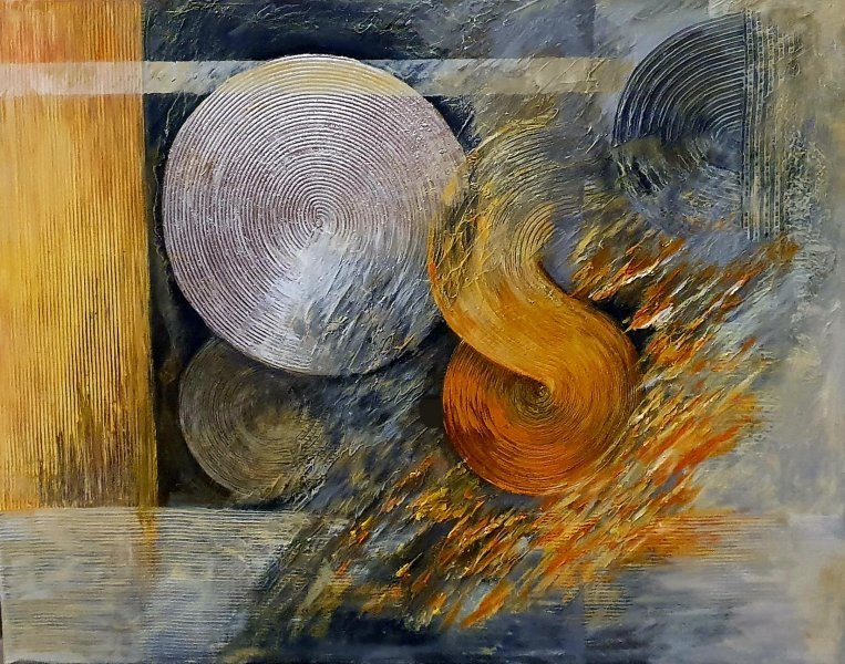Эта картина излучает энергию и гармонию, демонстрируя сложные взаимодействия фигур и элементов, которые почти танцуют на холсте. Цвета и текстуры сочетаются, создавая завораживающий эффект и приглашая зрителя к размышлениям о влиянии и взаимосвязи. Текучесть форм и яркость оттенков вызывают чувство бесконечного движения, отражая динамику жизни через призму абстракции.