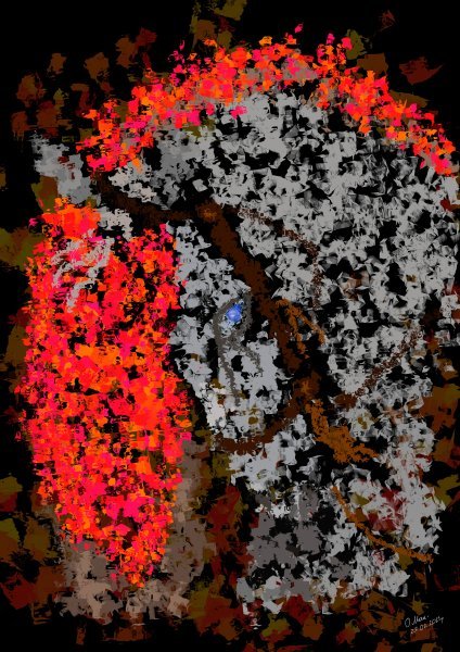 Ця картина є чудовим прикладом міфологічного мистецтва, в якому вогняний кінь стає символом сили і боротьби. Вогонь, який охоплює тварина, відбивається у дзеркальній гладі води, посилюючи контраст між яскравим зовнішнім виглядом та глибокими внутрішніми емоціями. Глядачі поринають у світ, де вогонь і вода зустрічаються, викликаючи ураган почуттів та роздумів. Теплі відтінки, що використовуються, створюють відчуття енергії, а деталі запрошують глядача зазирнути всередину себе, переосмислити власні відображення і переживання.