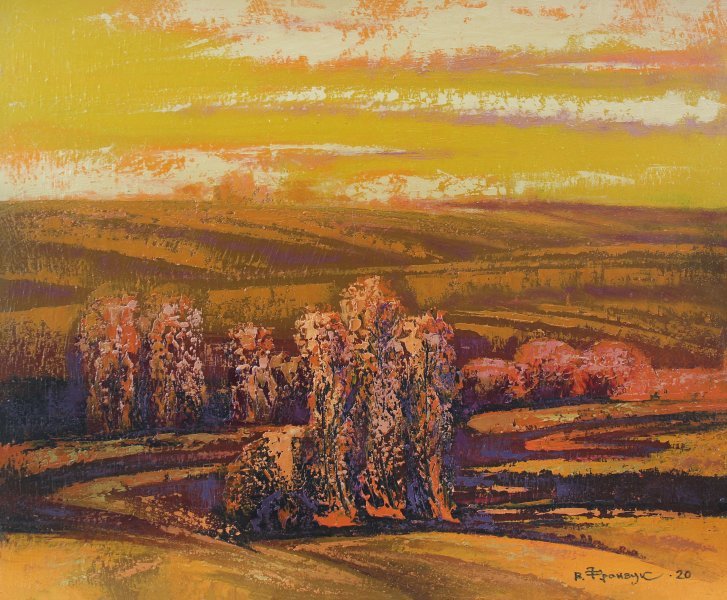 • Member of the National Union of Artists of Ukraine since 1990; • Laureate of the Vasyl Stus Prize, 2003; • Honored Artist of Ukraine since 2005; • Laureate of the National Taras Shevchenko Prize of Ukraine, 2008; • Member of the National Union of Designers of Ukraine since 2014; • People's Artist of Ukraine since 2015; Born on September 10, 1950, in the village of Zelena, Krasyliv District, Khmelnytskyi Oblast, Ukraine. Has been the resident of the capital of Ukraine, Kyiv, since 1980. From 1986 to 1989 - worked in the graphic workshop of the Kyiv Monumental Art Factory. Has been working creatively every day since 1990. Since 2014, Valerii Franchuk has donated over 30 paintings for 10 charity auctions to support the defenders of Ukraine and sick children. The artist's creative output over more than 35 years consists of over 8,000 paintings, more than 3,000 graphic works (under the unifying title "Sketchbook of Time"), and about 200 sculptures. His work resonates widely within public circles and among the cultural elite. To date, more than 360 reviews and publications have been written in newspapers and magazines in Ukraine and around the world, numerous documentary films have been made, and many radio interviews and reports have been recorded. His technique and style are characterized by a very vivid, unique manner of execution, which reflects elements of at least three movements: expressionism, impressionism, and symbolic realism. His graphic works are presented in techniques such as charcoal, monotype, etching, pastel, marker, sauce, pencil, and more. Valerii Franchuk's creativity has been acknowledged in at least 380 printed reviews as of 2024, and the number of publications in online media is equally substantial. His works are held in domestic museums, public organizations, cultural centers in Ukraine and around the world, as well as in private collections in Ukraine and many other countries. Valerii's works stand out not only for their diverse technical execution but also for their wide range of themes. They can be conditionally divided into series and cycles. Painting: • The cycle "I Pray for You, Ukraine" - the history of the Cossack era, T.H. Shevchenko; • The cycle "Swaying Bells of Memory" - based on the stories of Valerii's mother, who lived through the times of the Holodomor-genocide – work on this cycle has been ongoing for three decades; • The series "Understanding the Truth" - the search for answers to the eternal questions of human life; • The series "Chorna-Byl" (Dark Existense) - the realization of the Chornobyl disaster as a technological catastrophe of global scale; • The cycle "Hosanna to the Creator of the World" - impressions of the wonders of the world, the nature of Ukrainian land; • The cycle "Fruits of the Humanity's Garden" - a harmonious combination of the human soul, philosophical reflections on existence, portraits; • The series "Peace to You!" - biblical themes; • The series "Sources" 1990 - themes from Ukrainian folk songs and the everyday life of Ukrainians; • The series "Silence of the Old City" - architectural landscapes; • The cycle "Portal" - the author's reflections on the invisible spiritual world; • The series "My Galaxy" - the artist's mental journeys through the planets and their satellites in our galaxy. Sculpture: works made of wood in an original style akin to Trash-art, which can be conditionally divided into series: • "To the Heroes of the Heavenly Hundred" 2014; in memory of first civilian victims, peaceful protesters, that were ruthlessly executed by the cold guns of the tyrannycal anti-ukrainian goverment; • "Kobzar" 2012-2013; dedicated to the poetry of the Ukrainian poet and artist, Taras Shevchenko; • "Through the Prism of Time" - events, emotions, moments of life. • "Vize-Runes" - decorative ornamental compositions; • "Gospel" - biblical themes and scenes; • "Yesterday, Today, Tomorrow" 2013; • "Candle of Memory" 2013; • "Tripillian Swargy" 2013; • "Parable" 2013; • "Scythians"; Awards and Honors: • Honorary Certificate from the Mayor of Kyiv, 2003. • Honorary Distinction from the Ministry of Culture and Tourism of Ukraine "For Achievements in the Development of Culture and Arts," 2003. • Badge of Honor "Sign of Distinction," 2005. • Honorary Distinction from the Ministry of Culture and Tourism of Ukraine "For Many Years of Fruitful Work in the Field of Culture," 2005. • Order of Merit, III Class, 2008. • Order of Saint Archangel Michael, Ukrainian Orthodox Church of the Kyiv Patriarchate, 2008. • Distinction from the Prime Minister of Ukraine "Gratitude," 2010. • Jubilee Medal in Commemoration of the 25th Anniversary of the Ukrainian Cultural Foundation, 2012. • Medal "Builder of Ukraine," 2015. • Medal "For High Professionalism," Ukrainian Cultural Foundation, 2015. • Medal of the National Union of Artists of Ukraine "For Creative Achievements," 2023.
